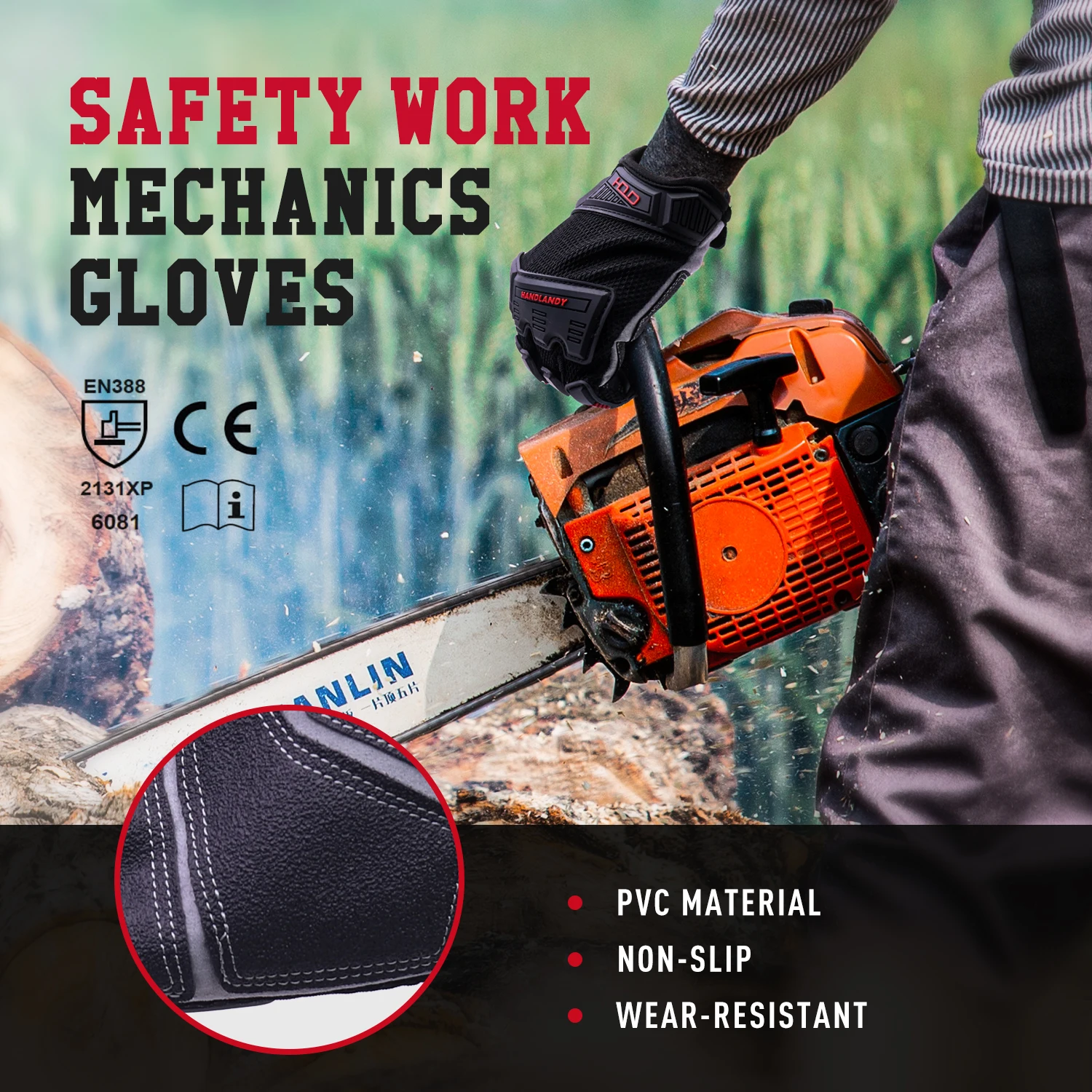 Reinforced Anti Abrasion & Anti Slip Work Gloves: Synthetic leather with PVC reinforced palm patch, thumb and fingertips for extra durability and protection.